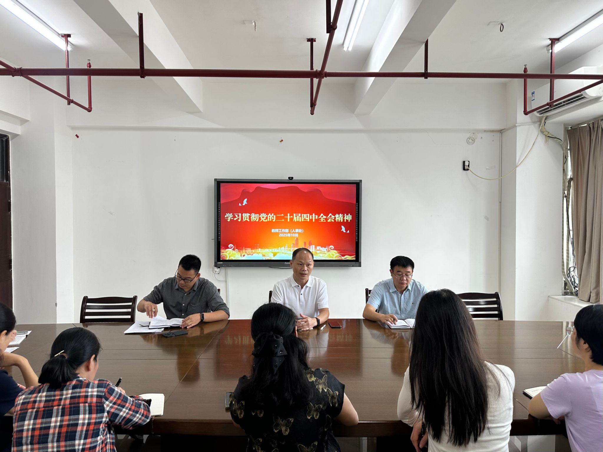 近日,教师工作部党支部召开会议传达学习贯彻党的二十届四中全会精神,党支部书记黄伟东主持会议。
